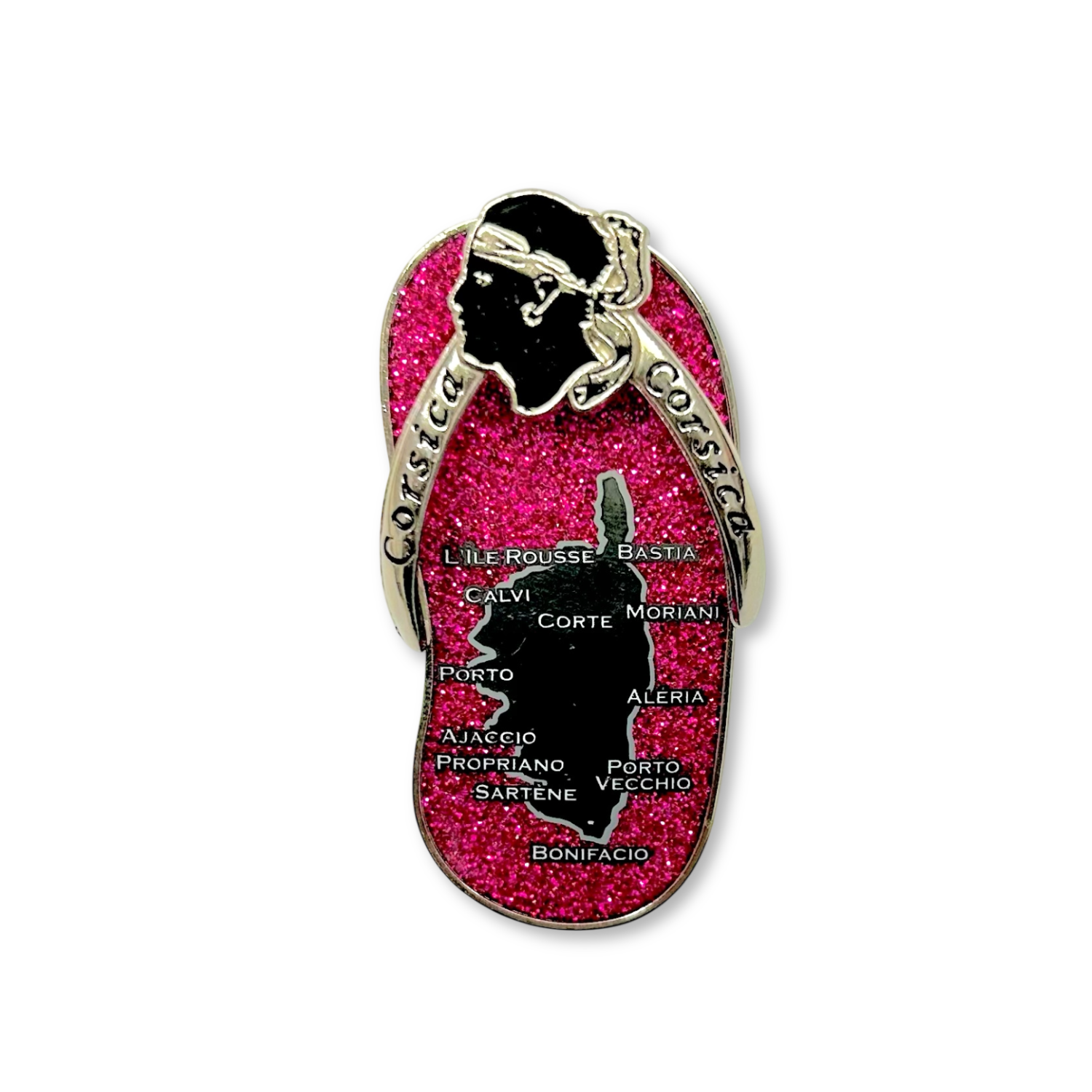 Découvrez le magnet en forme de tong corse à paillettes roses, un accessoire fun et coloré qui célèbre l’esprit de la Corse avec originalité. Idéal pour décorer votre frigo, votre bureau ou tout autre espace, ce magnet allie créativité et authenticité. Sa finition brillante à paillettes apporte une touche moderne et ludique, parfaite pour offrir en souvenir ou pour compléter votre collection d’objets corses uniques.